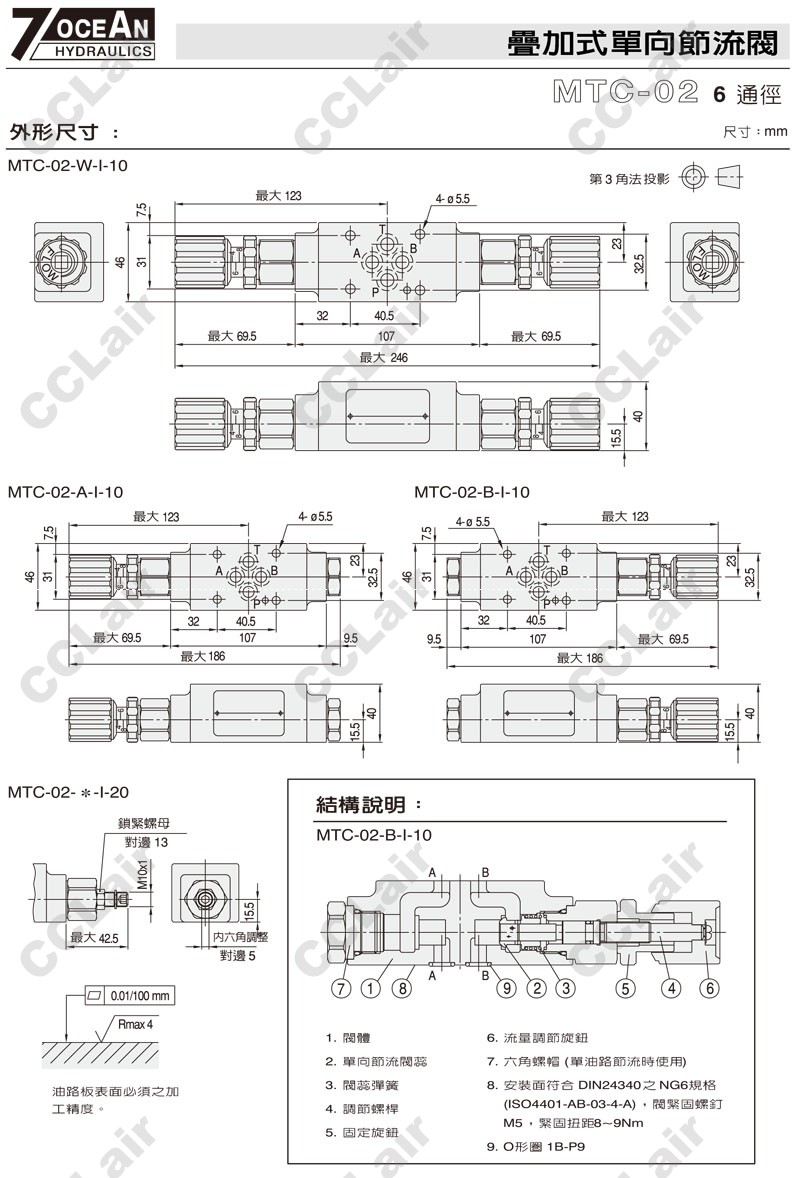 詳細信息 MTC-02-W,MTC-02-A,MTC-02-B,MTC-02-A-I-10,MTC-02-W-O-20,MTC-02-B-I-20,7OCEAN七洋疊加式單向節(jié)流閥