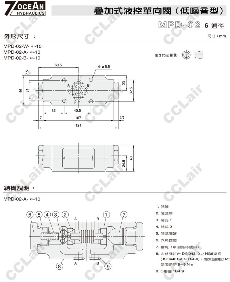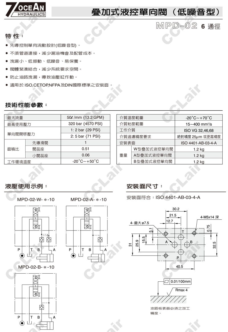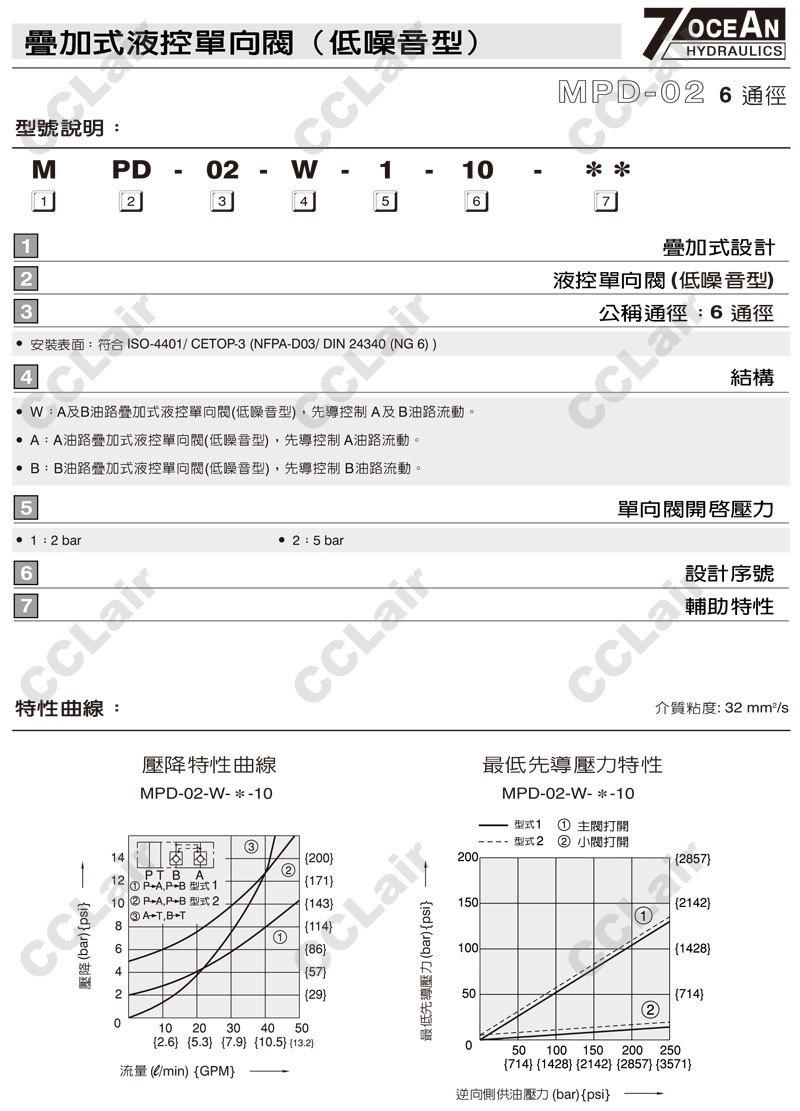 MPD-02-W,MPD-02-A,MPD-02-B,MPD-02-A-2-10,MPD-02-B-1-10,7OCEAN七洋疊加式液控單向閥