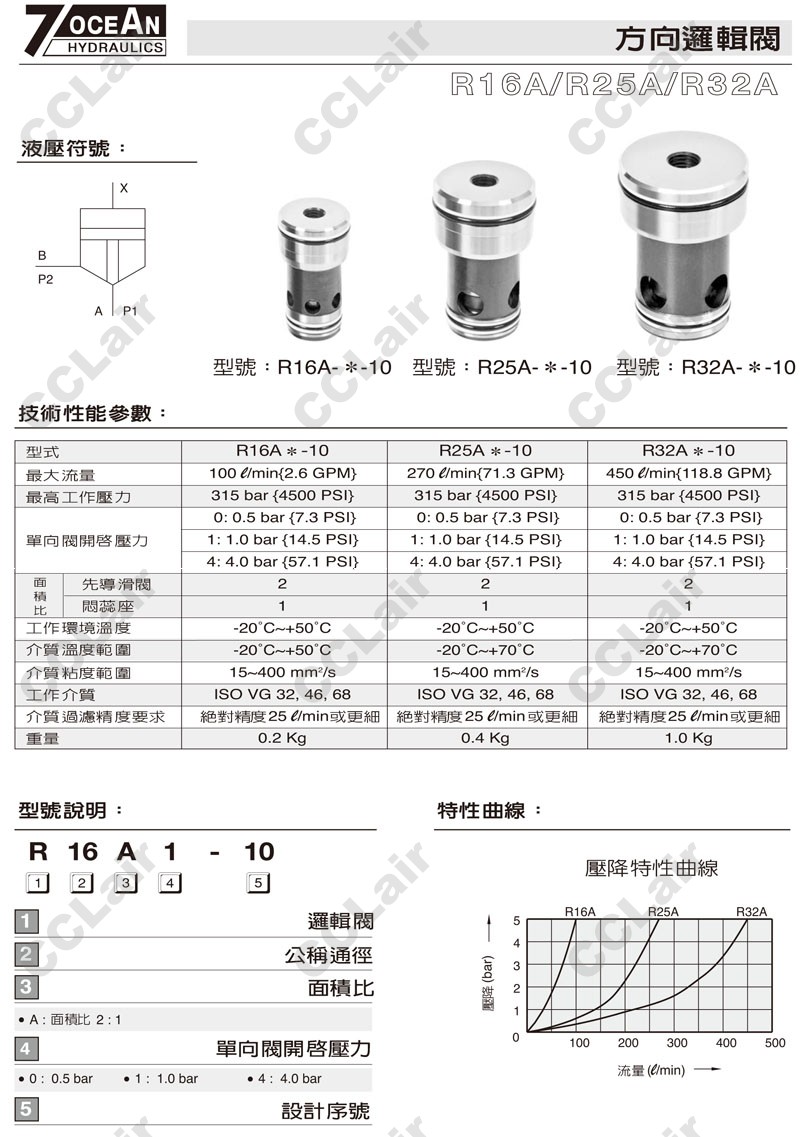 R16A1-10,R16A0-10,R16A4-10,R32A1-10,R32A0-10,R32A4-10,R25A1-10,R25A0-10,R25A4-10,7OCEAN七洋方向邏輯閥