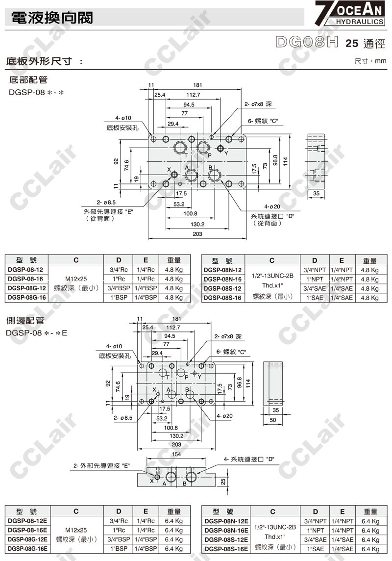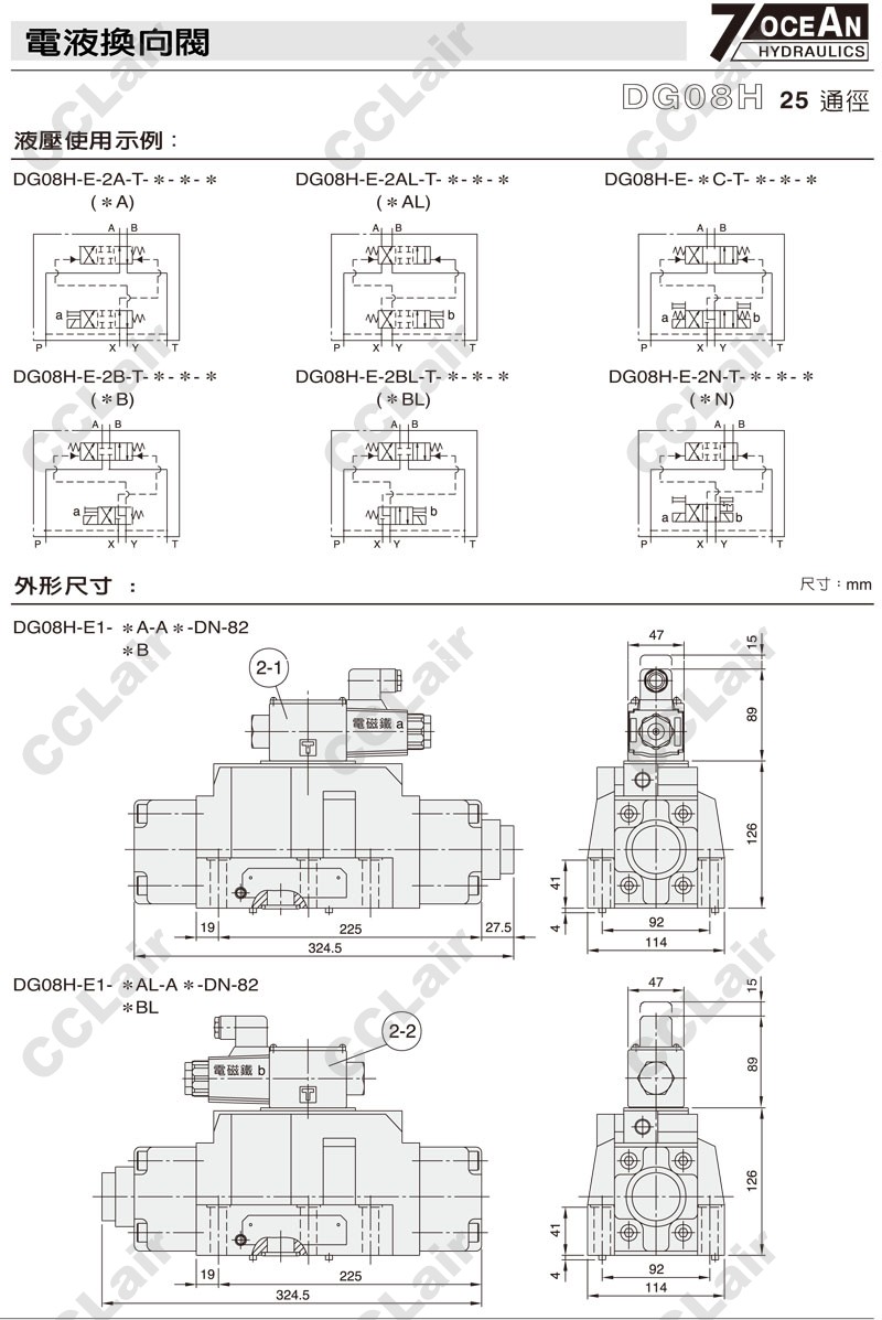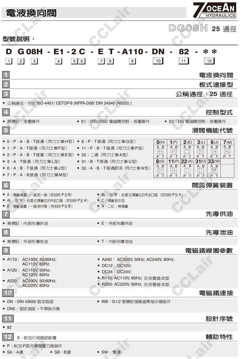 DG08H-E1,DG08H-E2,DG08H-E1-11BL-ET-A110-DN-82,DG08H-E2-11BL-E-A120-DN-82,7OCEAN七洋電液換向閥