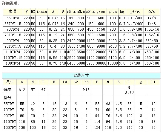 詳細(xì)信息 55TDY4,55TDY115,70TDY4,90TDY115,110TDY4,130TDY4,電機(jī)