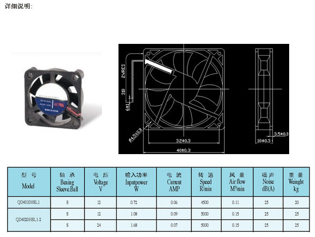 詳細信息 QD4010HSL1,QD4020HSL1-2,直流風(fēng)機