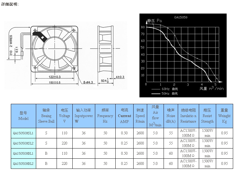 詳細(xì)信息 QA15050HSL1,QA15050HSL2,QA15050HBL1,QA15050HBL2,交流風(fēng)機(jī)