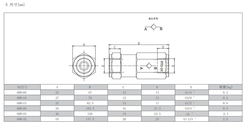 RTD-06-1-10,RTD-10,RTD-15,RTD-20,RTD-25,RTD-32,單向閥
