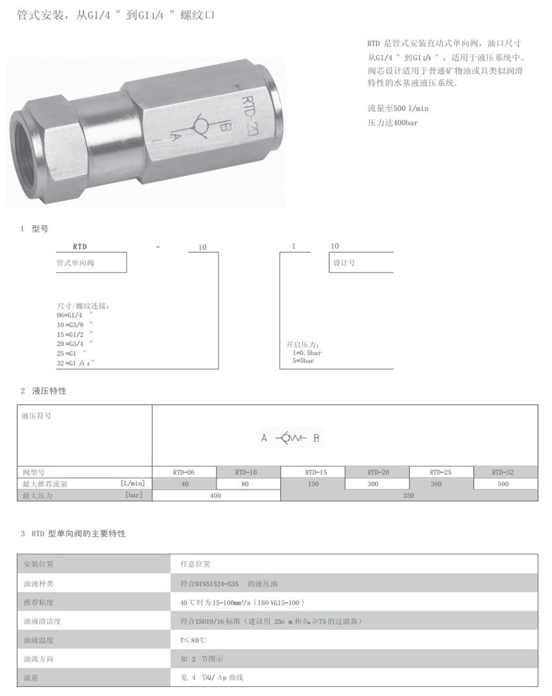 詳細信息 RTD-06-1-10,RTD-10,RTD-15,RTD-20,RTD-25,RTD-32,單向閥