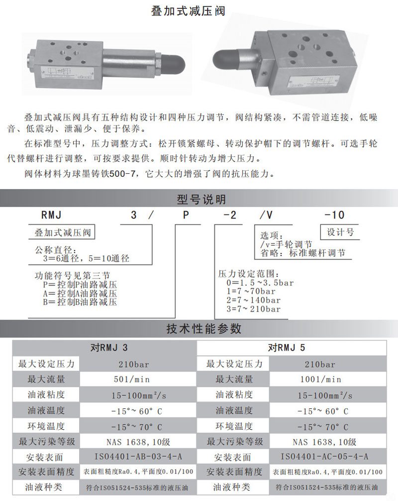 RMJ3/P-0/V-10,RMJ5/P-2/V-10,RMJ3/A-1/V-10,RMJ5/A-3/V-10,疊加式減壓閥