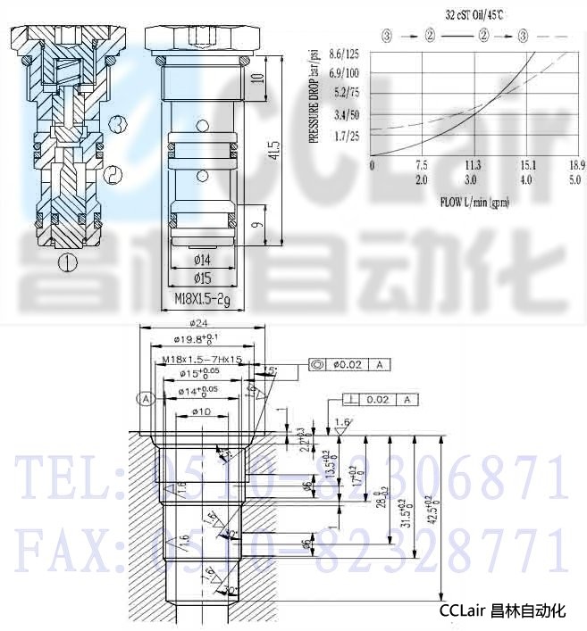 3, 此閥控制比為2.2:1,當(dāng)1口壓力達(dá)到3口壓力的 1/2.2時(shí),允許油液從3口到2口流通。
