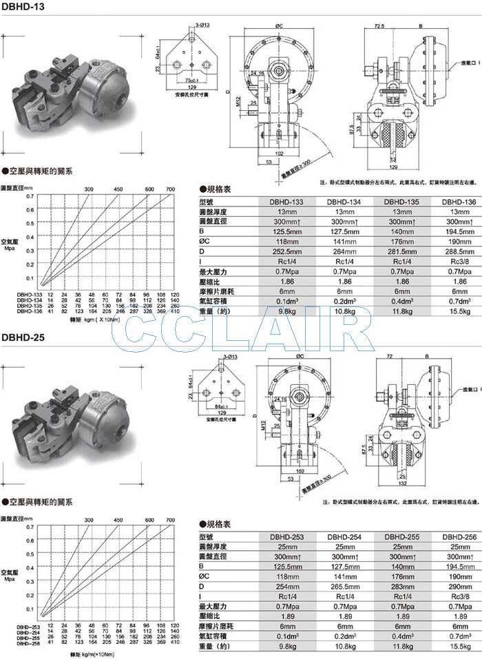 DBHD-133,DBHD-134,DBHD-135,DBHD-136,DBHD-253,DBHD-254,空壓碟式制動器