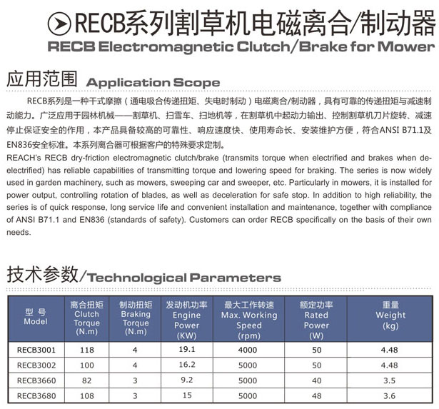 RECB3001,RECB3002,RECB3660,RECB3680,割草機電磁離合制動器