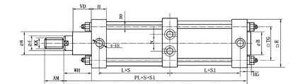 2、缸徑80mm行程S為200,S1為100的單耳尾座式串聯(lián)氣缸