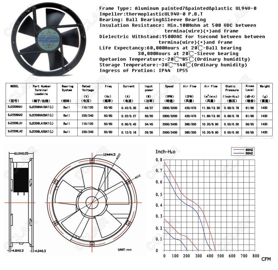SJ2206HA1,SJ2206HA2,SJ2206LA1,SJ2206LA2,SANJU 軸流風機