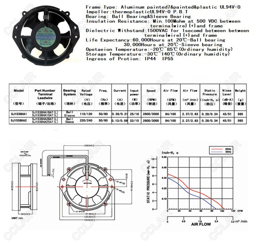 SJ1538HA1,SJ1538HA2,SANJU 軸流風機