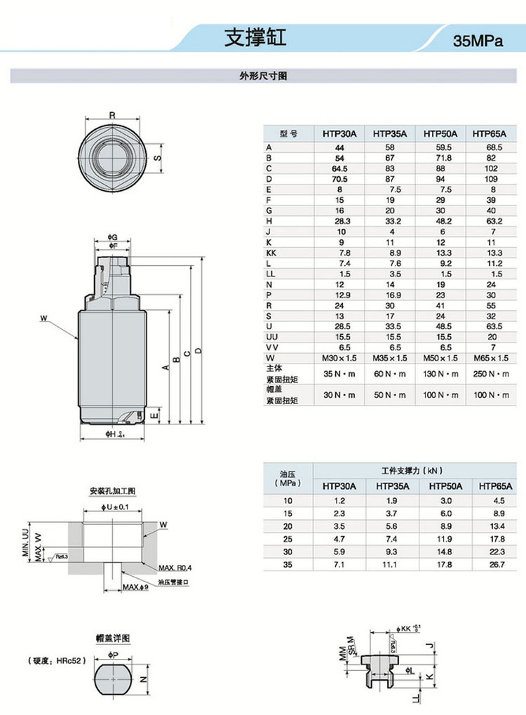 HTP-30A,HTP-35A,HTP-50A,HTP-65A,油壓支撐缸