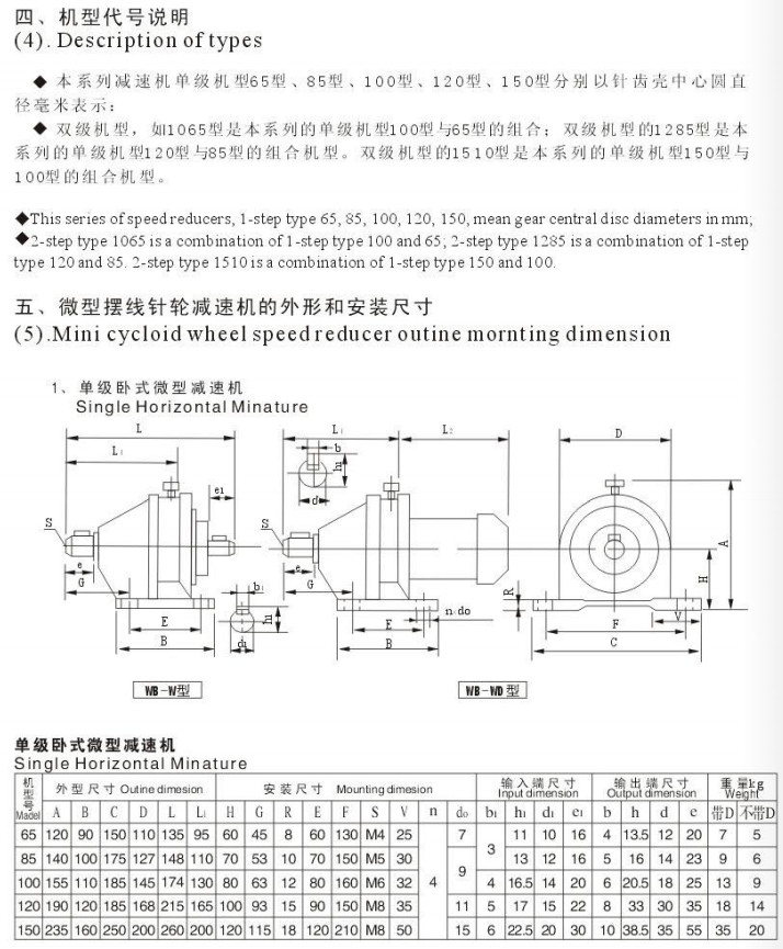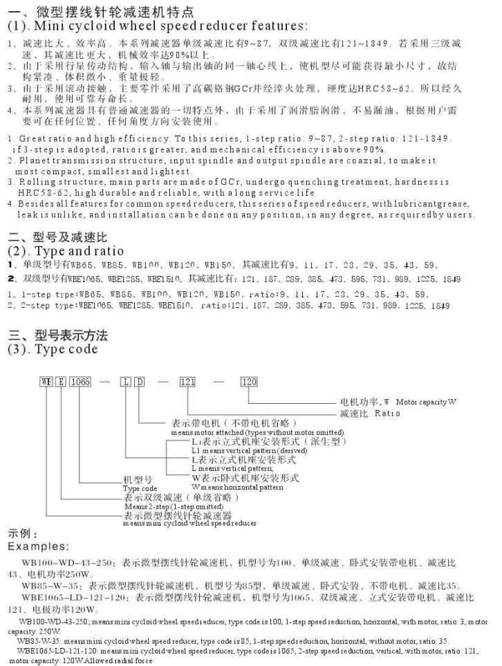 型號: WB65,WB85,WB100,WB120,WB150,WBE1065,WBE1285,WBE1510,微型擺線針輪減速機(jī)