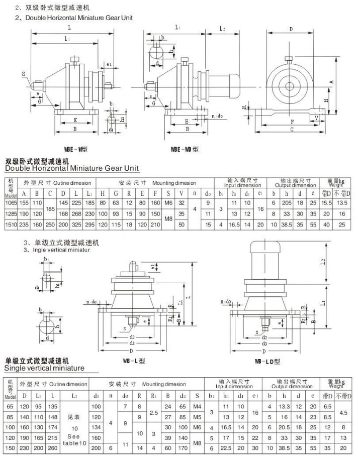 WB65,WB85,WB100,WB120,WB150,WBE1065,WBE1285,WBE1510,微型擺線針輪減速機(jī)
