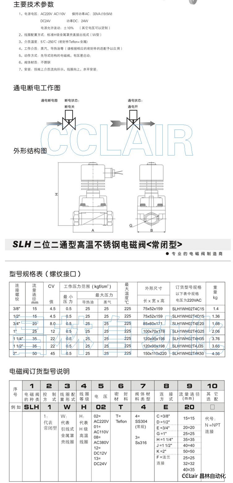 詳細(xì)信息 SLH1WH02T4C15,SLH1WH02T4D15,二位二通型高溫不銹鋼電磁閥(常閉型)