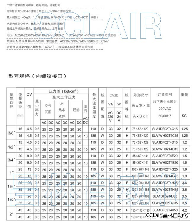SLA1DF02T4C15,SLA1WH02T4C15,不銹鋼二位二通電磁閥(常閉型)