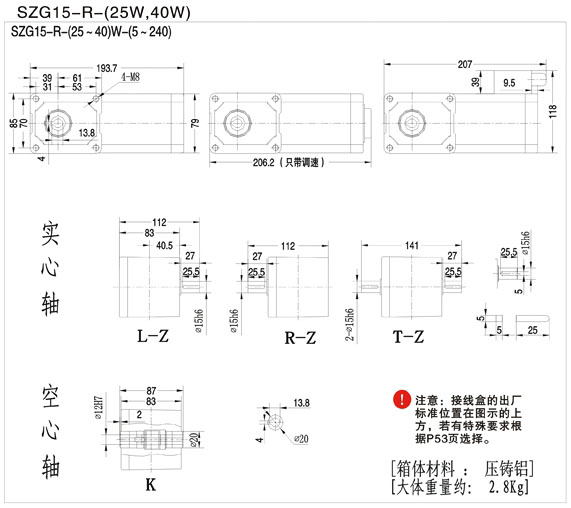 SZG15-R-25W,SZG15-R-40W,雙曲面齒輪減速機
