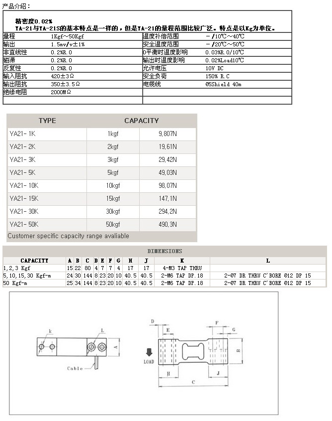 瀏覽次數:637YA21-1K,YA21-2K,YA21-3K,YA21-5K,YA21-10K,YA21-15K,setech稱重傳感器 |