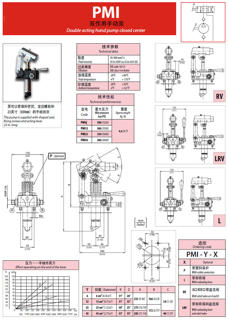 詳細信息 PMI6-P,PMI6-L,PMI12-RV,PMI25-LRV,PMI45-P,PMI12-P,雙作用手動泵