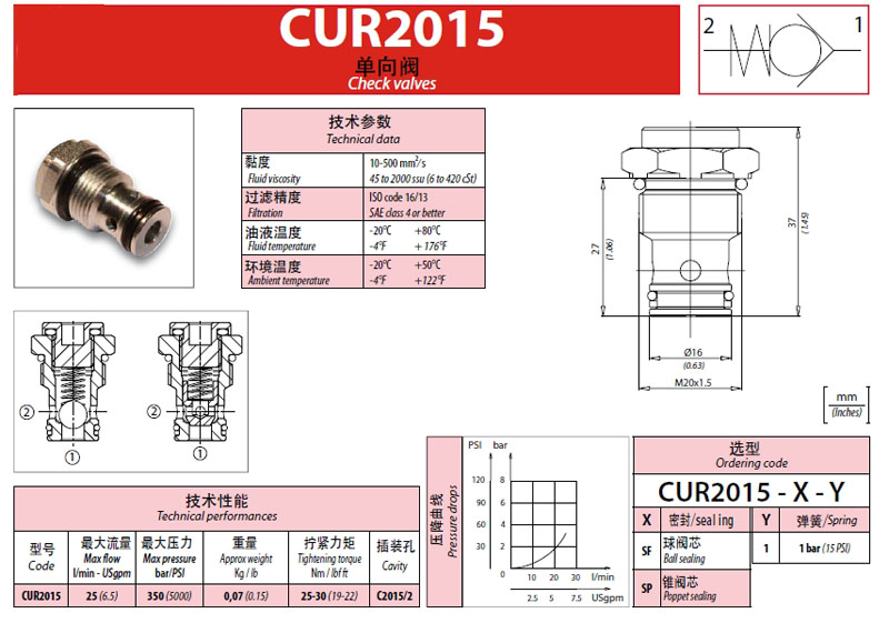 CUR2015-SF-1,CUR2015-SP-1,單向閥