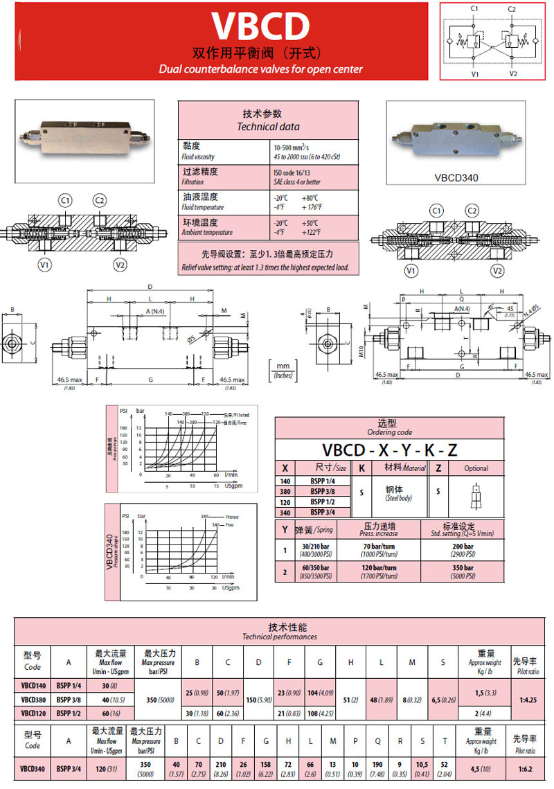 詳細(xì)信息 VBCD140,VBCD380,VBCD120,VBCD340,雙作用平衡閥