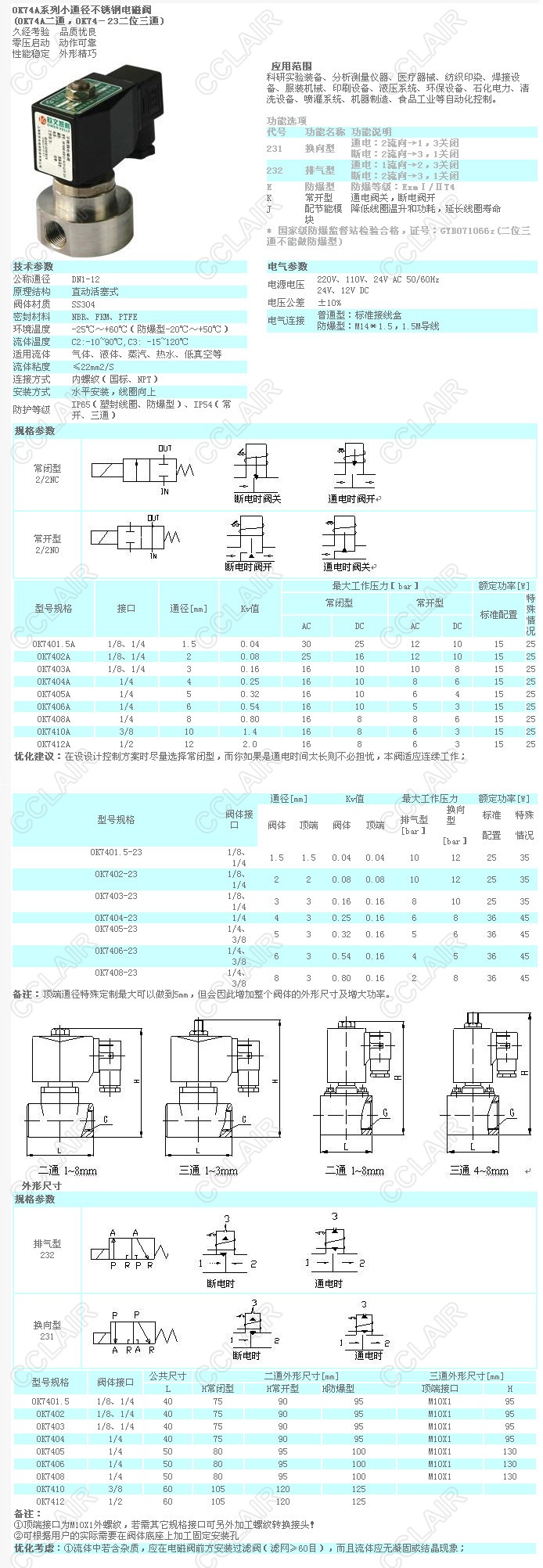 OK7401.5A,OK7402A,OK7403A,OK7406A,OK7408A,OK7410A,OK7412A,OK74A,小通徑不銹鋼電磁閥