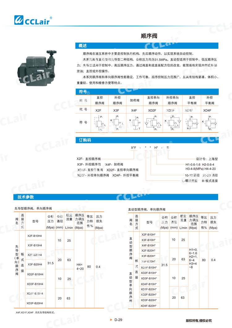 XD1F-L10H1-S,XD2F-L10H1-S,XD3F-L10H1-S,XD2F-L20H1-S,XD3F-L20H1-S,XD4F-L20H1-S,直動(dòng)型單向順序閥