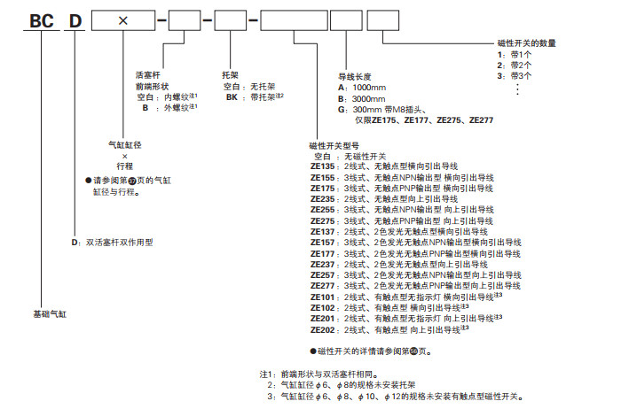 BCD6*5,BCD6*10,BCD6*15,BCD6*20,BCD6*25,BCD6*30,BCD8*5,BCD8*10,BC系列基礎(chǔ)氣缸--兩端出桿氣缸