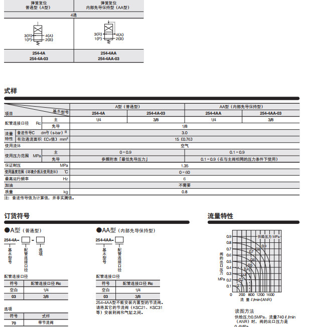 254-4A,254-4A-03,254-4AA,254-4AA-03,氣壓傳動閥254-4A系列