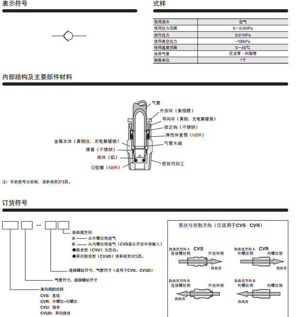 CVS4-M5A,CVS4-M5B,CVS4-M6A,CVS4-M6B,CVS4-01A,CVS4-01B,CVS6-01A,單向閥