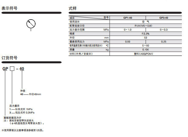 GP1-40,GP3-40,面板安裝壓力計(jì)