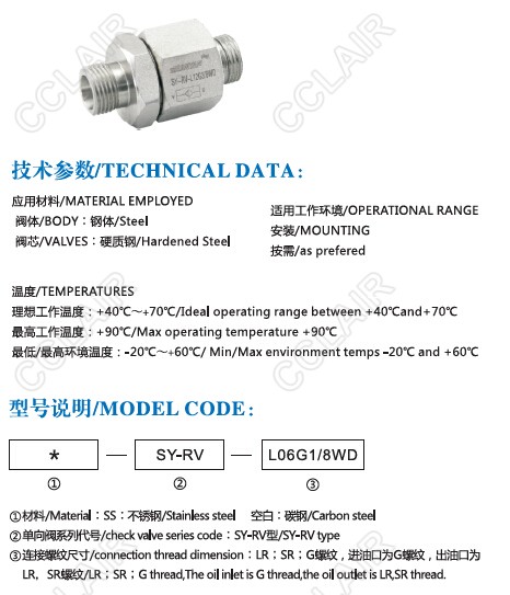 SY-RV-L06G1/8WD,SY-RV-L08G1/4WD,SY-RV-L10G1/4WD,SY-RV-L12G3/8WD,SY-RV,單向閥