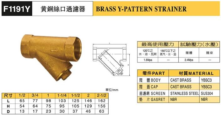 1191Y黃銅絲口過濾器尺寸:
