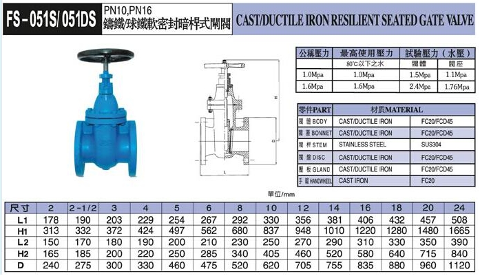 FS-051S,FS-051DS,軟密封暗桿式閘閥