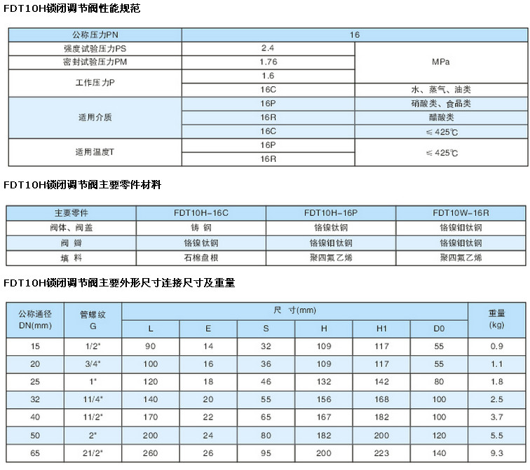 FDT40H-16C-DN15,FDT40H-16C-DN20,FDT10H-16C-DN25,鎖閉調(diào)節(jié)閥