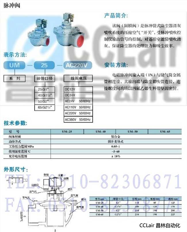 詳細信息 UM-25,UM-40,UM-50,UM-65,脈沖閥 ,生產(chǎn)廠家,價格