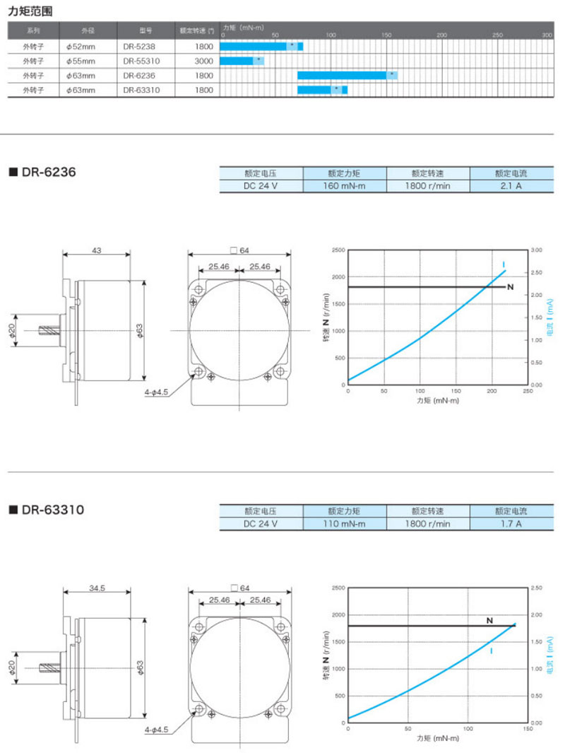 DR-5238,DR-55310,DR-6236,DR-63310,外轉(zhuǎn)子直流無刷馬達(dá)