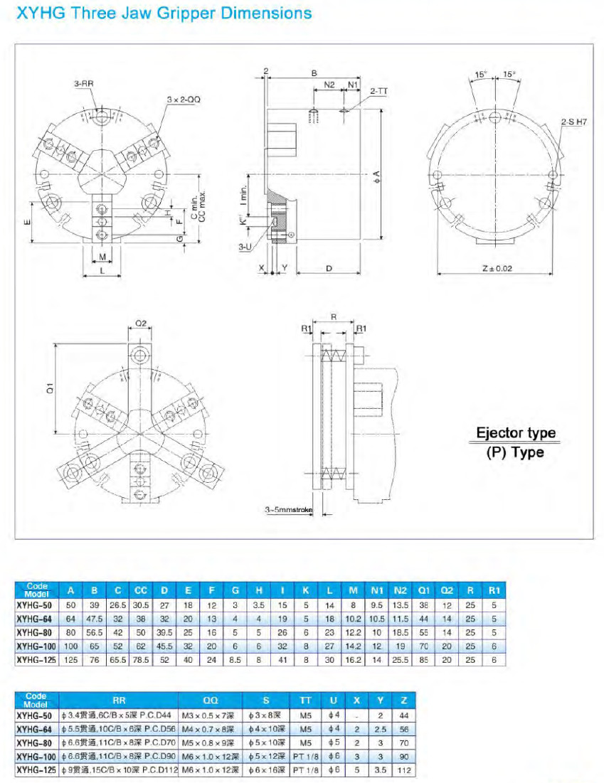 詳細信息 XYHG-50,XYHG-64,XYHG-80,XYHG-100,XYHG-125,Shinya三爪缸