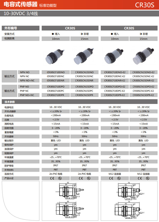 CR30SCF10DNO,CR30SCF10DNC,CR30SCF10DNR,CR30SCF10DPO,CR30SCF10DPC,CR30SCF10DPR,電容式傳感器