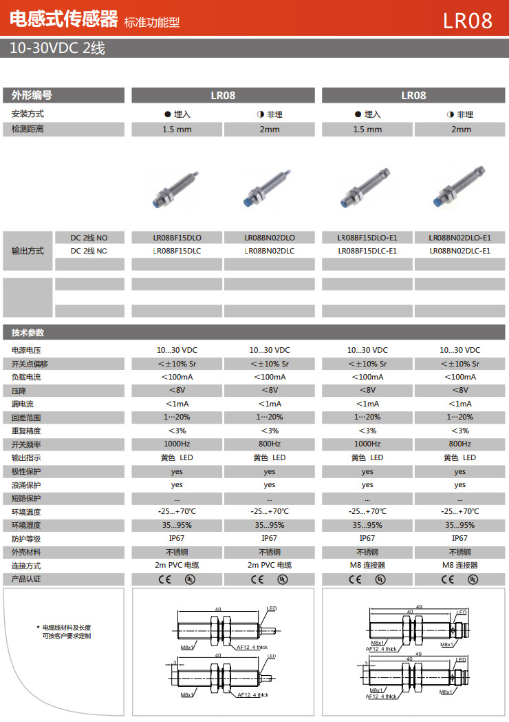 詳細信息 LR08BF15DLO,LR08BF15DLC,LR08BN02DLO,LR08BN02DLC,LR08BF15DLO-E1,LR08BF15DLC-E1,LR08BN02DLO-E1,LR08BN02DLC-E1,電感式傳感器
