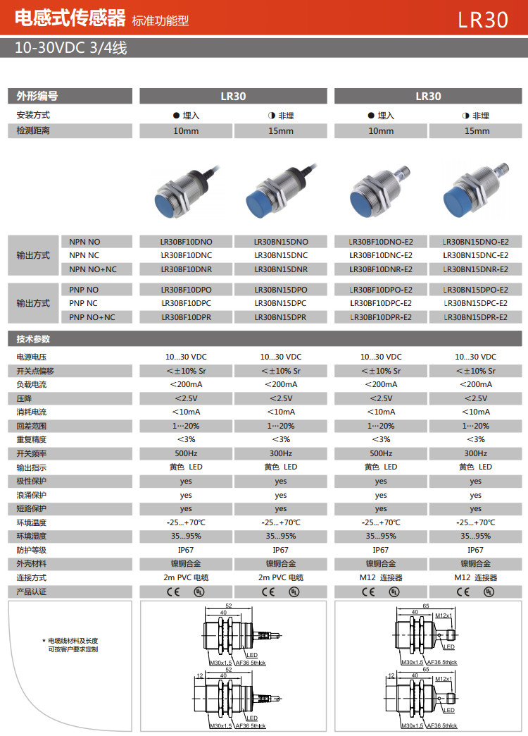 詳細(xì)信息 LR30BF10DNO,LR30BF10DNC,LR30BF10DNR,LR30BN15DNO,LR30BN15DNC,LR30BN15DNR,電感式傳感器
