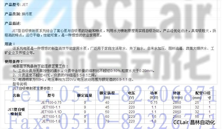 詳細(xì)信息 JET100-0.75,JET100-1.1,JET100-1.1D,JET100-1.5,JET100-1.8,自吸噴射泵,