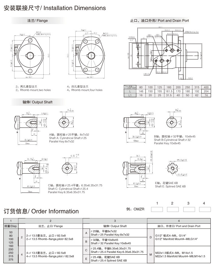詳細(xì)信息 OMZR50,OMZR80,OMZR100,OMZR125,OMZR160,OMZR200,OMZR250,OMZR315,OMZR375,擺線馬達(dá)