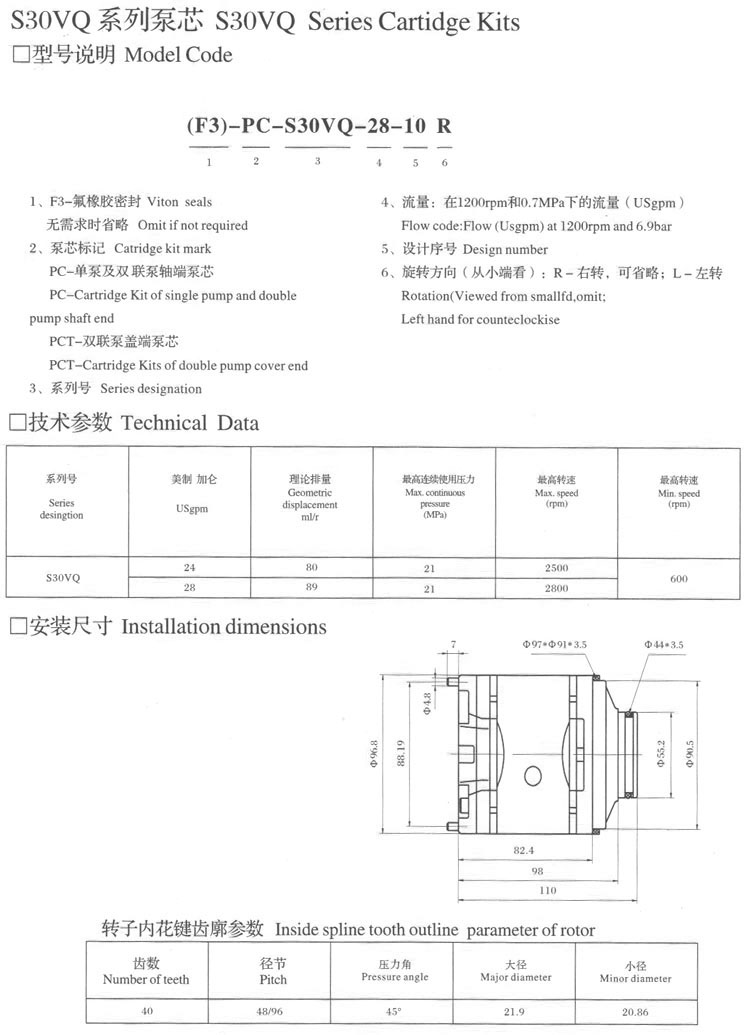 PC-S30VQ-28-10R,PC-S30VQ-24-10R,PCT-S30VQ-28-10L,PCT-S30VQ-24-10L,泵芯