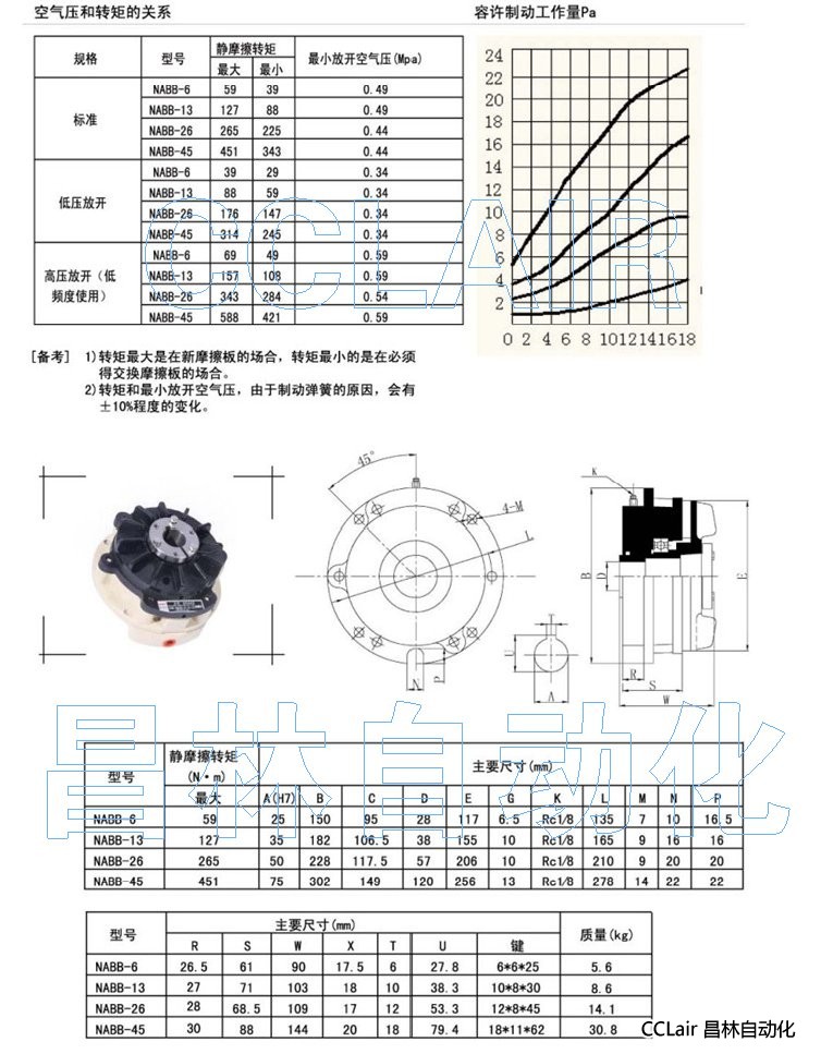 詳細(xì)信息 NABB-8,NABB-13,NABB-26,NABB-45,空壓(彈簧制動(dòng))通軸式制動(dòng)器