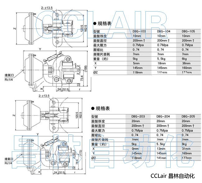 詳細信息 DBG-103,DBG-203,DBG-104,DBG-204,DBG-105,DBG-205,空壓碟式制動器