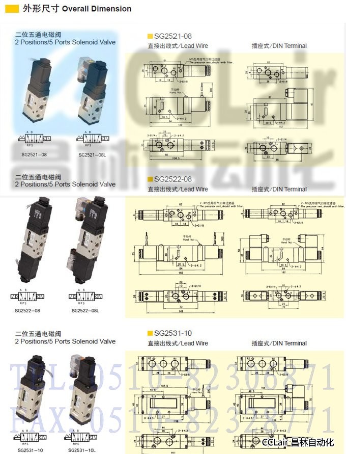 詳細(xì)信息 SG2521-08,SG2521-08L,SG2522-08,SG2522-08L,SG2531-10,SG2531-10L,二位五通電磁閥
