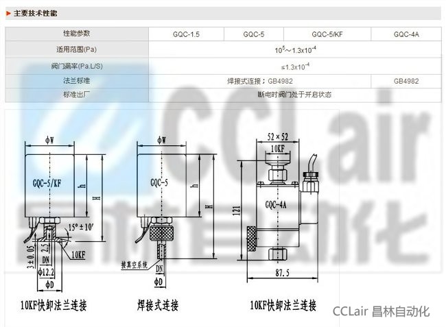 GQC-1.5 GQC-5型電磁高真空充氣閥是以電磁力為動(dòng)力,當(dāng)接通電源時(shí),閥門被關(guān)閉,使真空系統(tǒng)與大氣隔離;切斷電源時(shí),閥門處于開啟狀態(tài),隨之大氣由外界引入真空系統(tǒng)。GQC-4A型電磁高真空充氣閥具有通電開啟和通電關(guān)閉兩種功能,閥內(nèi)帶有空氣過濾器,可用作向真空系統(tǒng)充氣。