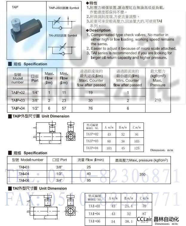 詳細(xì)信息 TAIP-02,TAIP-03,TAIP-04,TAI-03,TAI-04,TAI-06,壓力補(bǔ)償節(jié)流閥